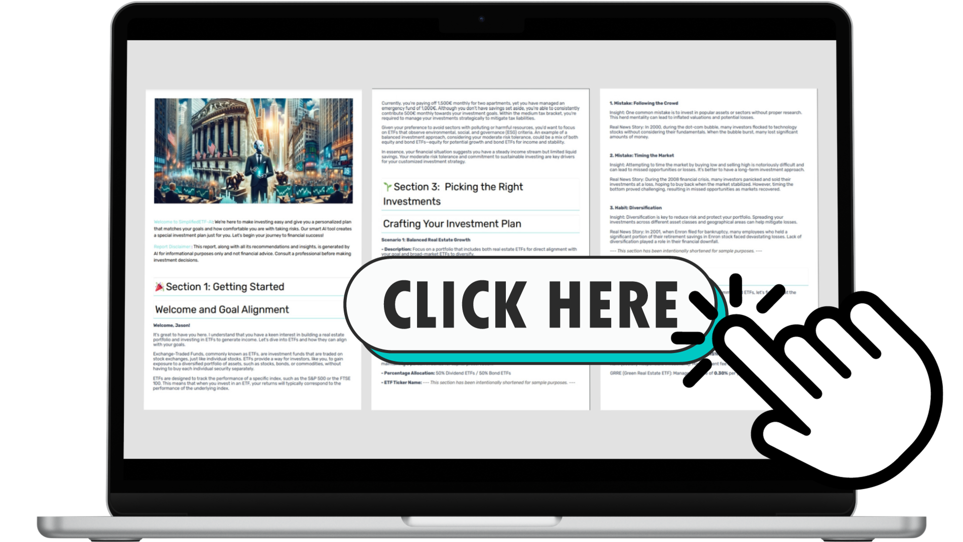 We provide a detailed report with personalized ETF investment strategies, created using AI, based on your financial information, goals and preferences.